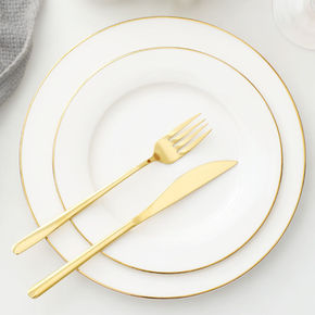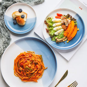 意面盘欧式描金边陶瓷西餐圆盘创意盘子牛排早餐碟子网...
