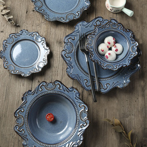 北欧复古浮雕巴洛克风西餐盘沙拉早餐盘ins甜品盘糕...
