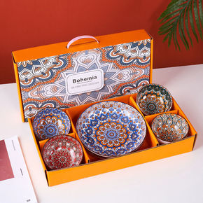 高颜值波西米亚碗筷勺碟盘子陶瓷餐具全套装家用吃饭碗...