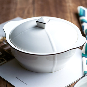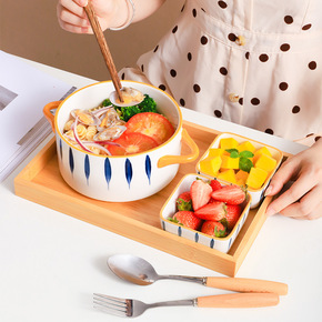 陶瓷带盖创意个性家用碗双耳单个可爱女学生餐碗网红精...