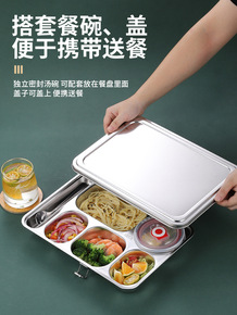 盘分格餐盘儿童不锈钢家用304带盖分餐食堂大人分隔...