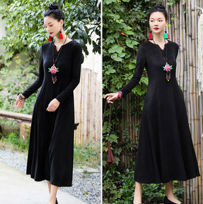 风汉服改良连衣裙女2021年秋冬新款气质女神温柔连...