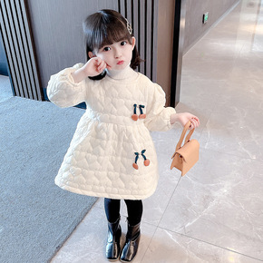 女童樱桃加绒棉服裙202秋冬新款儿童加厚连衣裙女宝...