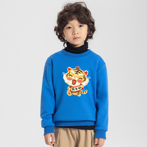 上衣现货过年圆领加绒卫衣小童衫儿童一体男童中款打底...