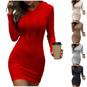 中长款卫衣女秋冬字母刺绣袋鼠兜外套头连帽连衣裙加厚...