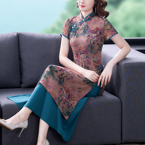 一件代发2021夏季新款旗袍修身显瘦印象潮流气质中...