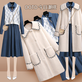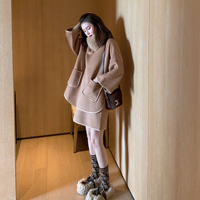 2021秋冬新款 气质优雅 半高领针织衫搭配双排扣...
