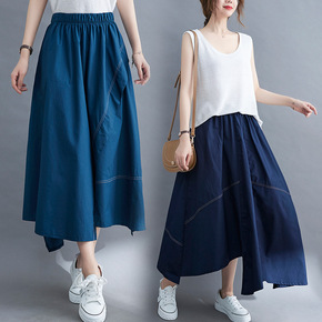 2021秋季新款不规则中长裙宽松文艺百搭可两面穿大...