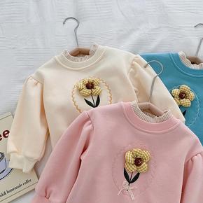 女童秋冬加绒长袖宝宝娃娃衫儿童卫衣打底衫小女孩上衣...