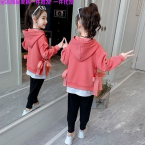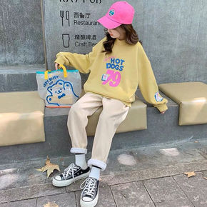 女童韩版冬装卫衣2021新款中大童装冬季加绒加厚上...
