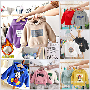 2021外贸尾货童装 加绒卫衣 卡通男女童连帽长袖...