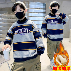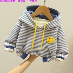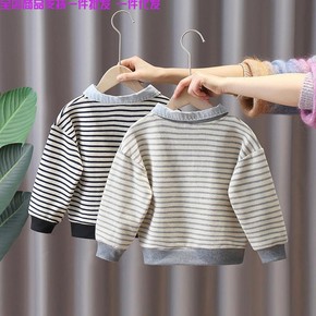 童装男童加绒卫衣秋冬装新款宝宝洋气条纹上衣宽松百搭...
