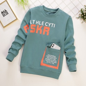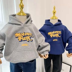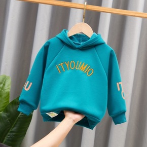 EK童装洋气高级字母男童加绒卫衣宽松圆领中大儿童上...