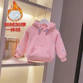 女童加绒卫衣秋冬洋气2021新款中大童儿童加厚上衣...