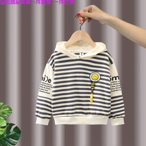 男童卫衣连帽2022新款儿童春秋装条纹上衣宝宝长袖...