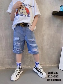 童装裤子2022年夏季新品中童潮范男童破洞牛仔裤现...