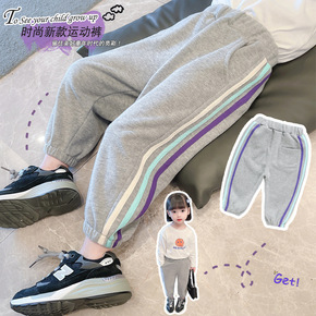 聪小妹2020秋装新款儿童拼接运动裤休闲裤男女童韩...