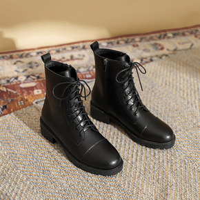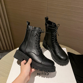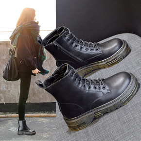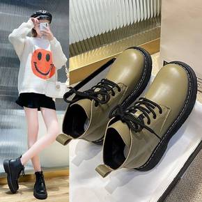 马丁靴女2021新款厚底短靴女 英伦风短筒系带切尔...