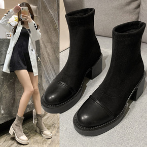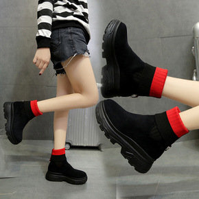 马丁靴女短靴2021秋季新款韩版松糕厚底弹力靴网红...