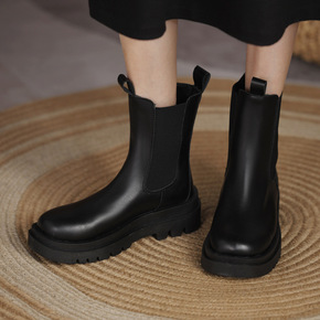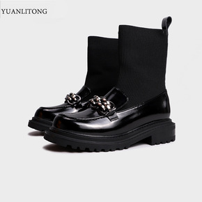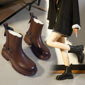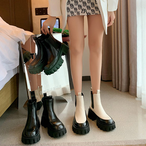 马丁靴女2021秋冬季新款短筒靴子厚底切尔西靴炸街...