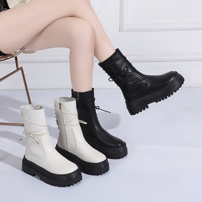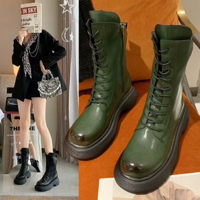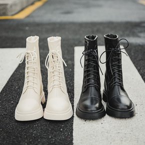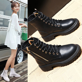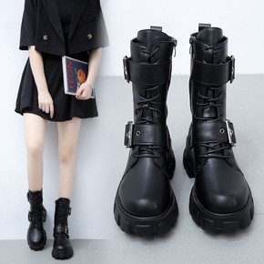 新款马丁靴女2021年秋韩版英伦风烟筒靴休闲时尚中...