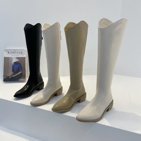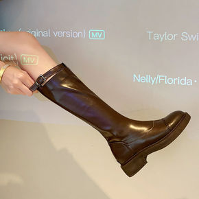 西部牛仔骑士靴女2021秋季布粗跟中跟圆头长靴不过...