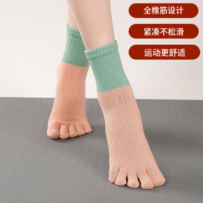 批发紧身瘦腿撞色瑜伽袜纯棉两码防滑袜拼色低筒普拉提...