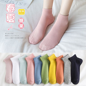 纯棉袜子女韩版纯棉短袜浅口船袜可爱日系春中筒糖果色...