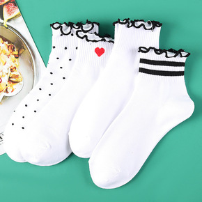 春秋荷叶边丝袜中筒防勾丝薄款女士丝袜松口袜子批发女...