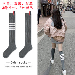 TB袜子四条杠灰色中筒袜纯小腿袜短棉日系过膝袜长筒...