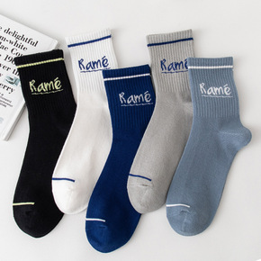 包邮法国油画袜子男中筒INS潮男士个性街头潮牌长袜...