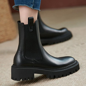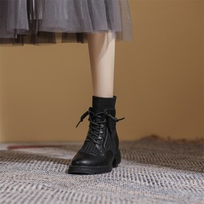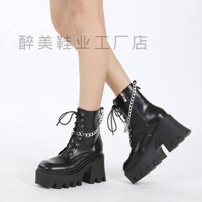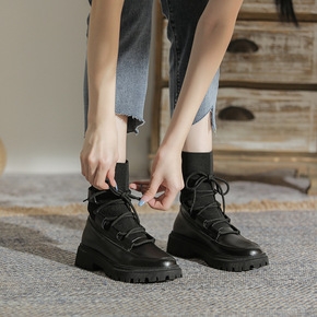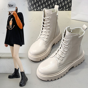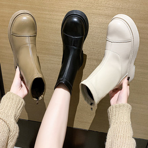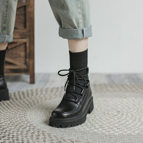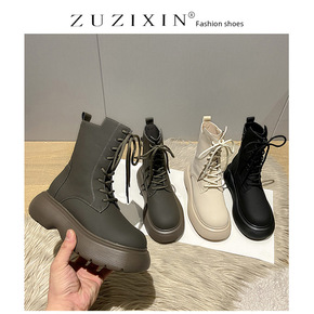 切尔西短靴女2021新款 厚底系带拉链女靴 英伦风...