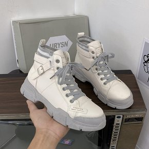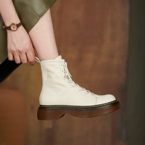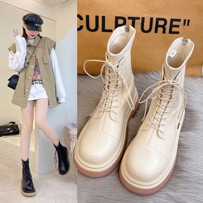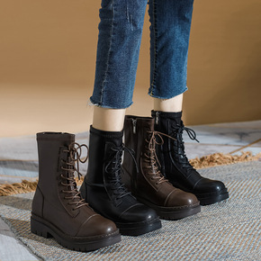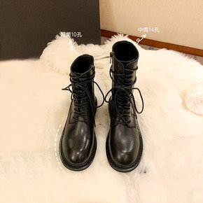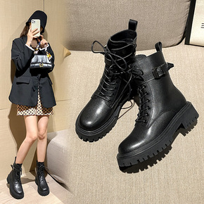 2021秋冬新款不过膝马丁靴女ins韩版系带中筒靴...