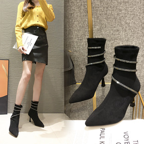 618-2短靴女绒面细跟2021新款秋冬高跟中筒靴...