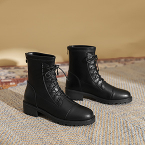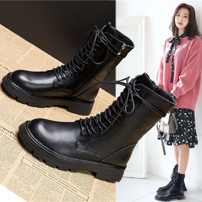 韩版2021早秋季新款时尚马丁靴女平跟低跟前系带英...