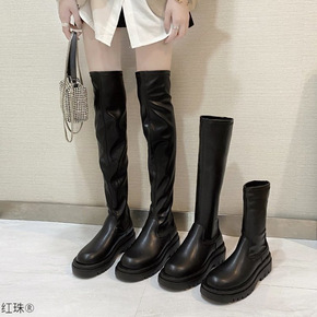 2021年秋中筒靴侧拉链厚底单靴32-34大小码4...