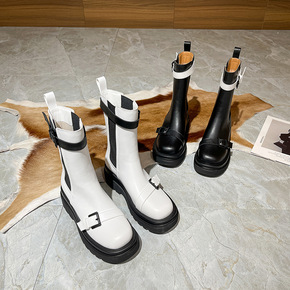 马丁靴女2021秋冬新款英伦风复古厚底切尔西短靴简...