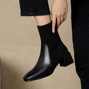 真软皮瘦瘦靴女2022秋季新款单靴马丁靴秋季中筒加...
