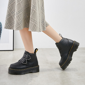 抖音爆款真皮马丁靴女2022秋季新款厚底英伦风大黄...