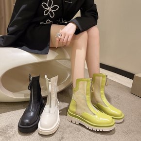 透明果冻底马丁靴夏季薄款女2022新款罗马凉靴网靴...
