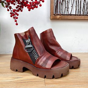 新款复古马丁靴女侧拉链短靴交叉绑带女凉靴平底时尚显...