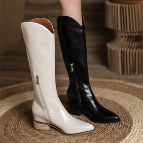 足路缘外贸春秋季女休闲白色中筒骑士靴内增高中跟皮单...