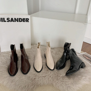 春秋欧美马丁靴短筒单靴新款漆皮休闲女靴子亮皮中跟切...