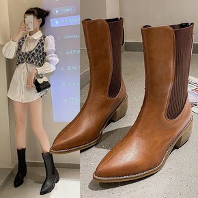 2020冬季新款方头高跟小短靴女春秋单靴子百搭网红...