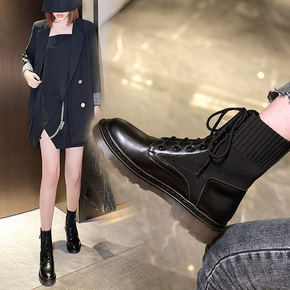 马丁靴女2021春秋新款英伦风厚底增高休闲运动百搭...