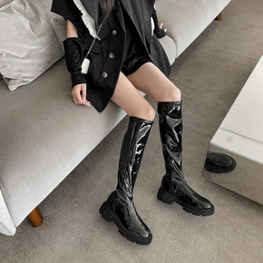 2020秋冬季厚绒里平底粗跟高筒靴大码靴子欧美帅气...