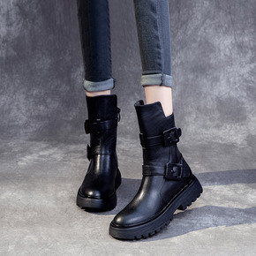 产品类别:马丁靴 适用年龄段:成年 货源类别:现货 货号:皮扣2101厚底中筒靴 鞋面材质:...