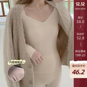 秋冬女薄款美体保暖内衣打底棉毛衫纯棉修身少女学生秋...