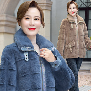妈妈冬装仿皮草外套女中年女装加厚丹麦貂毛外套大码水...