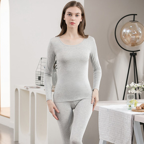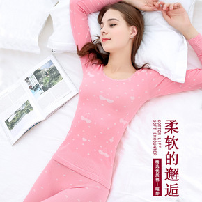 保暖内衣女 薄款纯棉圆领秋衣秋裤套装女士学生美体修...